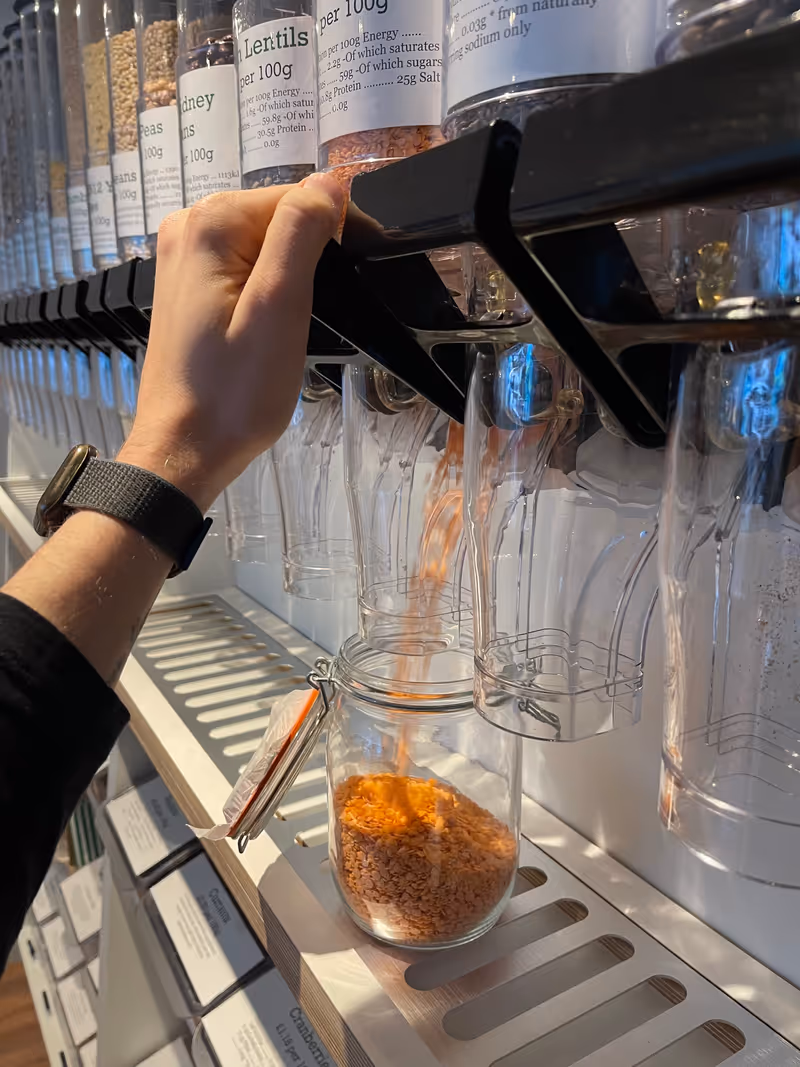 Our refill stations allow you to refill your containers with eco-friendly cleaning supplies, shampoos, conditioners, and body washes as well as kitchen staples like Flour, Seeds, Nuts, Lentils, Beans, Pastas and more.